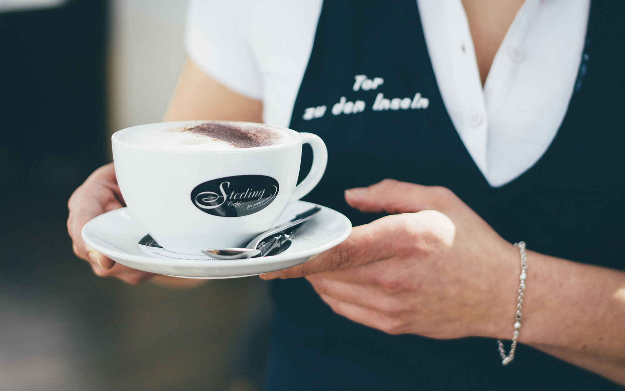 Oh dieser Duft, der so typisch für die Nordseeküste ist: eine frische Meeresbrise, das saftig-grüne Gras auf den Deichen, ein leckeres Krabbenbrötchen, der heiße Pharisäer, leckerer Kuchen... Moment mal, was weht denn da so verheißungsvoll um unsere Nasen? Schnell haben wir entdeckt, woher diese vielversprechenden Aromen kommen: aus dem modernen Servicegebäude zwischen den Fähranlegern. Denn hier liegt das Bistro „Tor zu den Inseln". Magisch angezogen steigen wir die Treppe nach oben und stellen fest: Ja, jetzt und hier beginnt unser Urlaub!