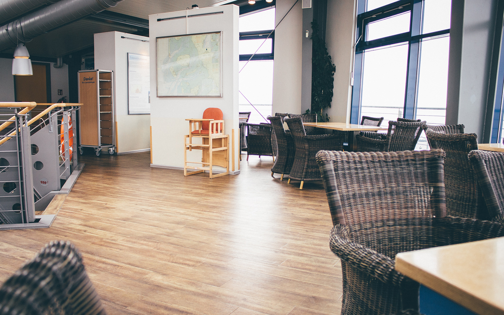 So ein Logenplatz an der Küste ist schon was Besonderes. Hier im Bistro können wir uns ausruhen, bevor es weiter auf die Inseln geht. Pläne für den Urlaub schmieden. Oder einfach nur dem bunten Treiben am Hafen zuschauen. Und dank der großen Spiele-Ecke haben auch unsere Kleinen die lange Anfahrt ganz schnell vergessen. Gut gelaunt und bestens gestärkt sind wir schon jetzt im Nordsee-Urlaubs-Feeling.