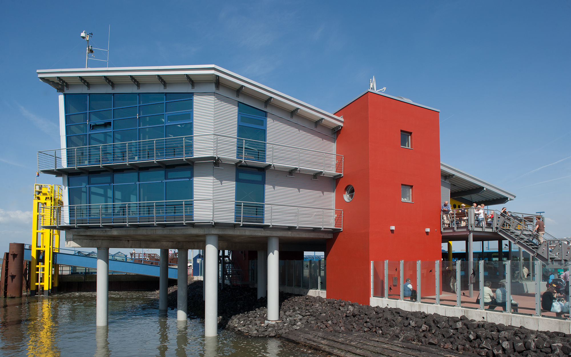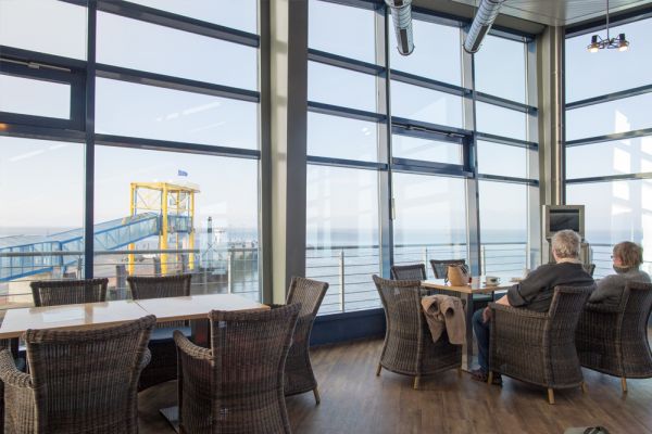Machen Sie sich Ihre Wartezeit so angenehm wie möglich. Im Gebäude finden Sie ein Restaurant und gemütliche Sitzgelegenheiten auf zwei Etagen, von denen aus Sie einen tollen Panoramablick auf Nordsee, Schiffe und Hafen haben.