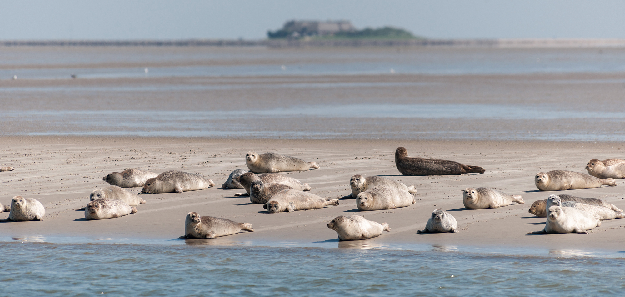 Im Wattenmeer gibt es 4 bis 5 große Sandbänke, an denen wir Seehunde vorfinden, zum Beispiel auf Norderoogsand, westlich von Pellworm gelegen, sowie auf einer großen Sandbank westlich von Amrum. Nicht zu vergessen die Sandbank an der Fahrrinne nach Langeneß. Die Seehundpopulation im Wattenmeer beträgt inzwischen über 1.000 Tiere, Tendenz steigend.