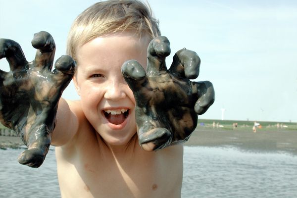 In der Tat bewegen wir uns bei einer Wattwanderung auf dem Meeresboden. Außer den Vögeln, die uns hin und wieder auf unserem Weg begleiten, sind alle Tiere, die uns begegnen, Meeresbewohner. Das Wattenmeer fällt zweimal täglich trocken, so dass wir durch"waten" können. Daher leitet sich auch das Wort „Watt" ab. Warum man es mit dem doppelten „t" schreibt, weiß keiner mehr so genau – stört aber auch nicht. An manchen Stellen watten – nein – waten wir auf eher festem Sand, an anderen Stellen begrüßt uns der matschig-schwarze Schlick, der zwar sehr anhänglich aber dafür umso gesünder für unsere Haut ist. Egal wie, wir müssen da durch. Denn irgendwann kommt die Flut zurück, und dann sollten wir besser wieder auf dem Trockenen sein.