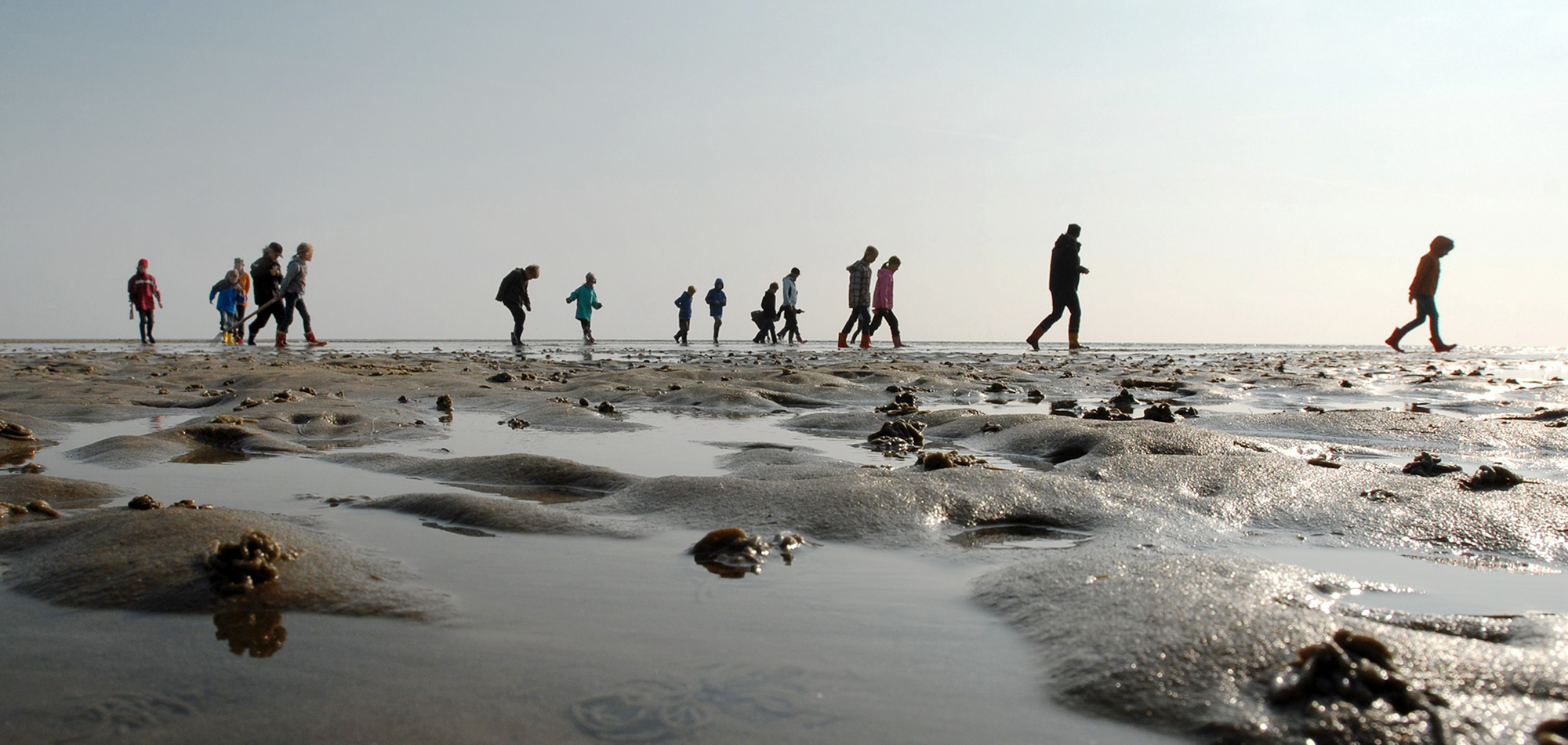 „Uhhhh!" – die ersten Schritte sind noch nass und kühl, aber schon nach wenigen Metern freuen sich Füße und Seele um die Wette. Denn was gut für die Füße ist, das ist auch gut für den Kopf. Eine Wattwanderung öffnet Herz und Augen für die Natur, die sich hier draußen in ihrer reinsten Form präsentiert. Keine Technik, kein Auto, kein Lärm. Schnell ist das Festland vergessen und wir bewegen uns wie die Entdecker einer neuen Welt im einzigartigen Weltnaturerbe Wattenmeer. Ohne die erfahrenen Wattführer würden wir uns schnell ziemlich verloren vorkommen, und so folgen wir ihnen gerne und hören gut zu. Denn Erstaunliches und Überraschendes gibt es in Hülle und Fülle. Man muss nur ein Auge dafür haben.